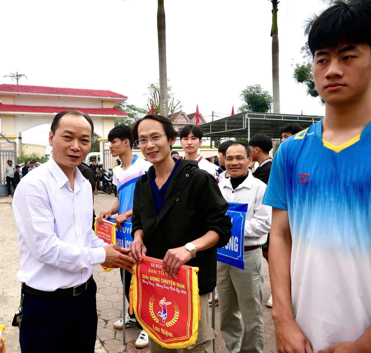 Tham dự buổi lễ có các đồng chí: Nguyễn Thiều Quang - Bí thư Đảng ủy, Chủ tịch HĐND xã; Bùi Lê Văn - Phó Bí thư Thường trực Đảng ủy; Nguyễn Anh Đức - Phó Bí thư Đảng ủy, Chủ tịch UBND xã; cùng các đồng chí trong Thường trực HĐND, lãnh đạo UBND, Ủy ban MTTQ xã; đại diện các ban, ngành, đoàn thể; tổ trọng tài, huấn luyện viên, vận động viên và đông đảo bà con Nhân dân đến cổ vũ.
