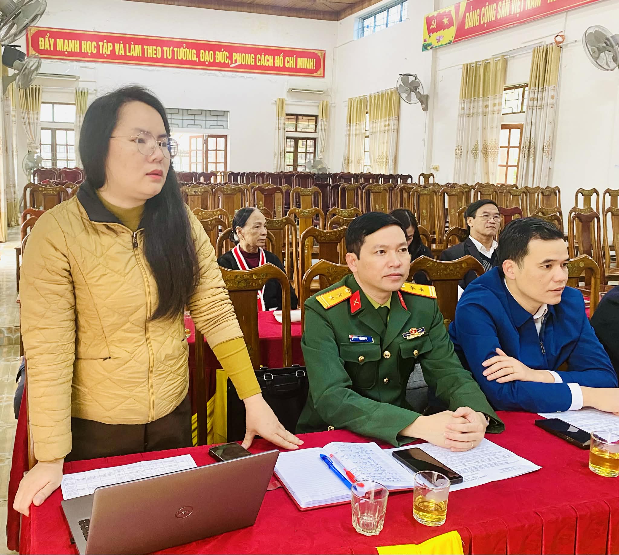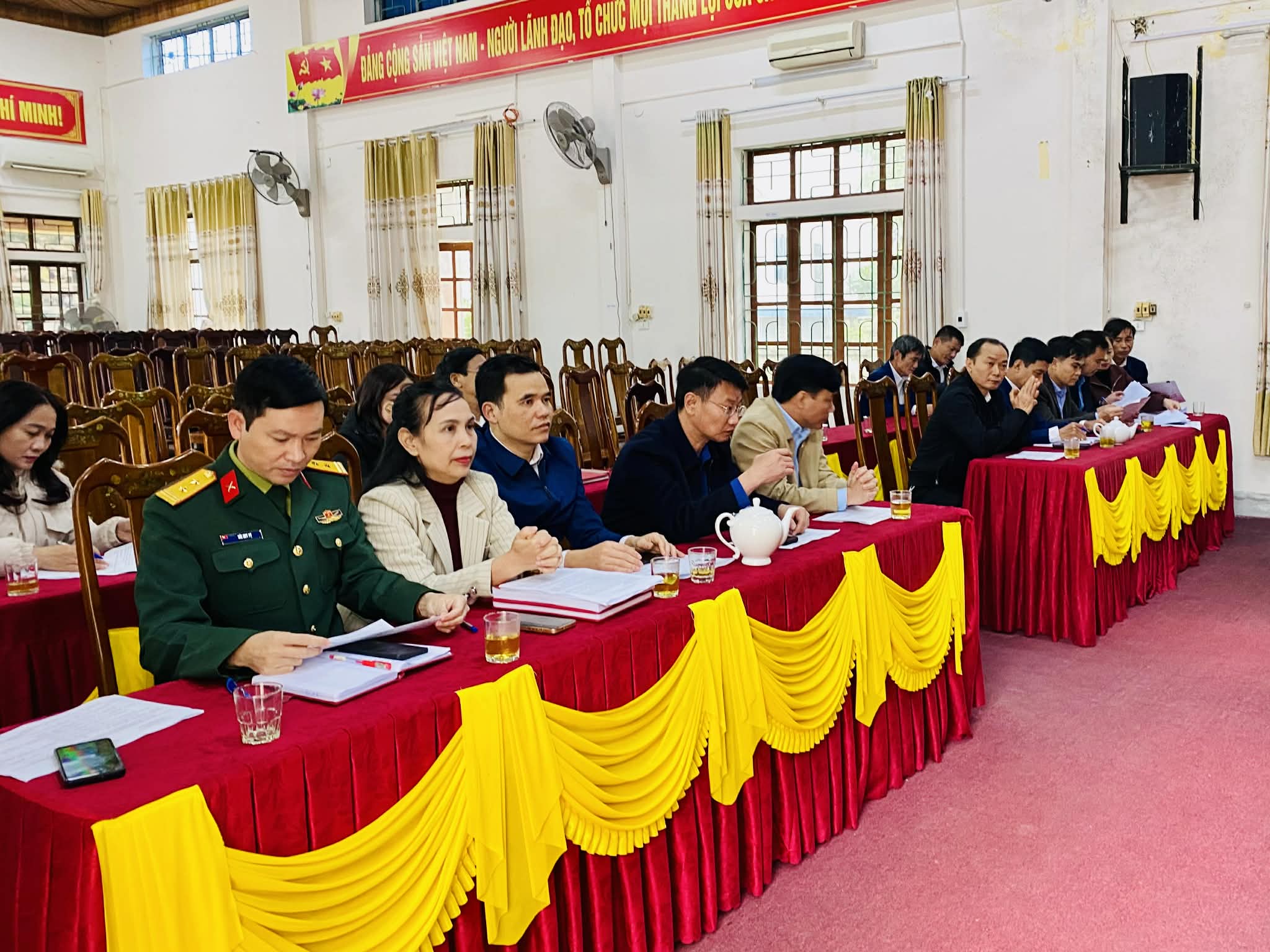 Về cơ cấu thành phần gồm: Khối cơ quan Đảng 09 người; đại biểu chuyên trách HĐND 03 người; Đại biểu khối chính quyền 07 người; Đại biểu khối Ủy ban Mặt trận Tổ quốc và các TCCTXH 11 người; Đại biểu khối LLVT: 04 người; Đại biểu khối các đơn vị sự nghiệp, doanh nghiệp, HTX: 04 người; Đại biểu khối chi bộ thôn xóm: 03 người.
