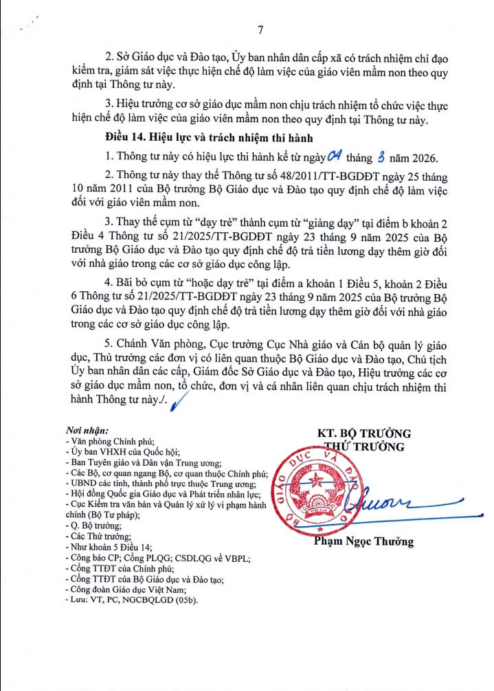 Thông tư quy định chế độ làm việc đối với giáo viên mầm nonThuý Mùi06/03/2026A -A+Thuý Mùi06/03/2026A -A+Thông tư 11/2026/TT-BGDĐT, ngày 04/03/2026 của Bộ Giáo dục và Đào tạo quy định chế độ làm việc đối với giáo viên mầm non