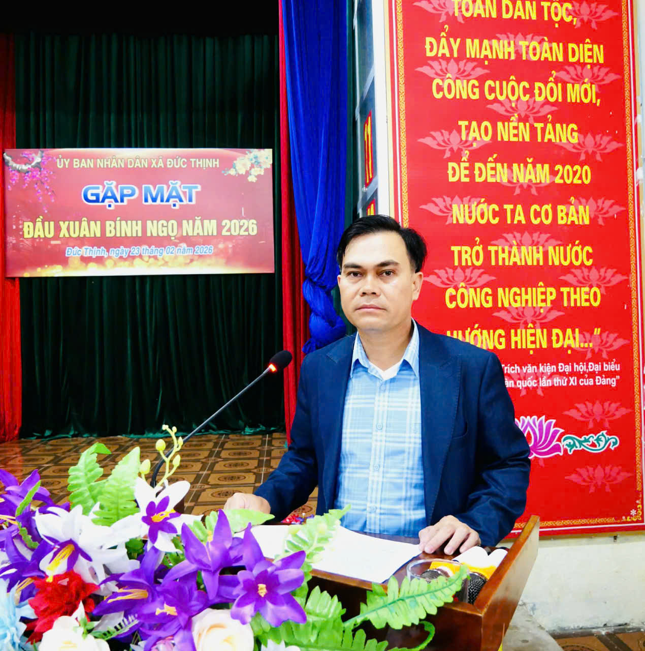 Đồng chí Nguyễn Anh Đức - Chủ tịch UBND xã phát biểu tại biểu gặp mặt