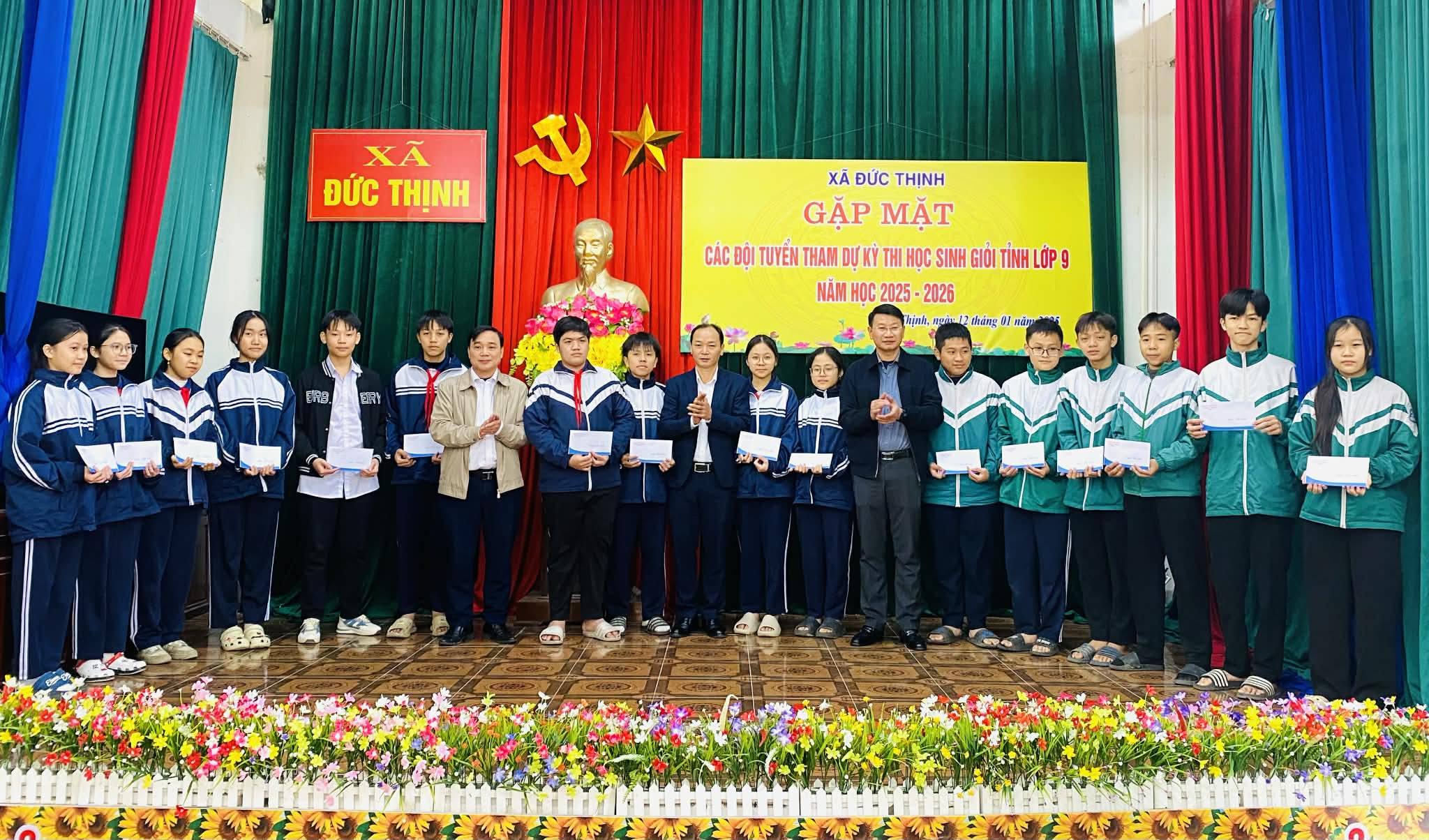 Tham gia kỳ thi học sinh giỏi tỉnh lớp 9 năm học 2025 - 2026, xã Đức Thịnh có 52 em học sinh đến từ 04 trường THCS trên địa bàn gồm: Lê Văn Thiêm, Bình Thịnh, Lê Ninh và Thanh Dũng.