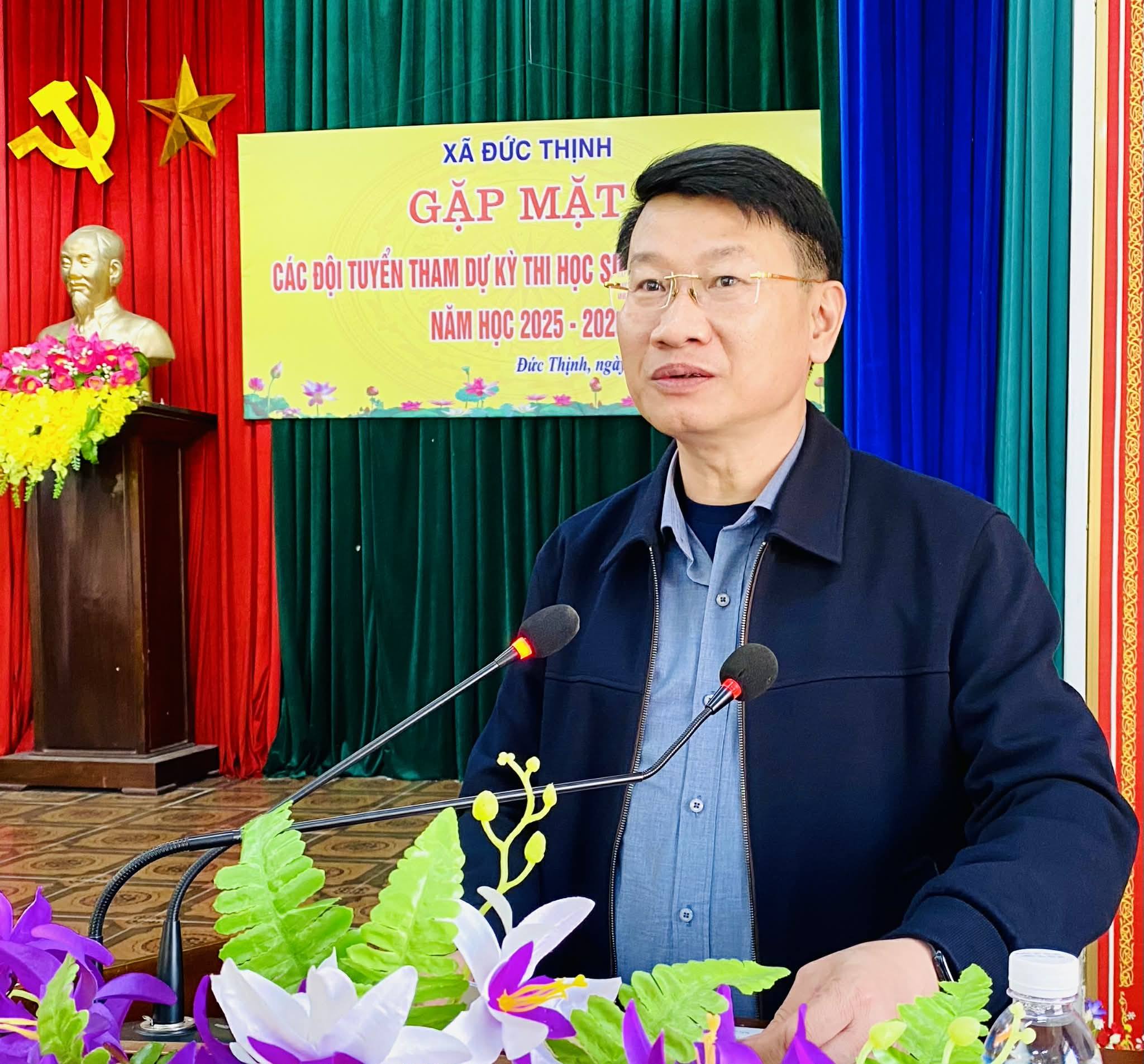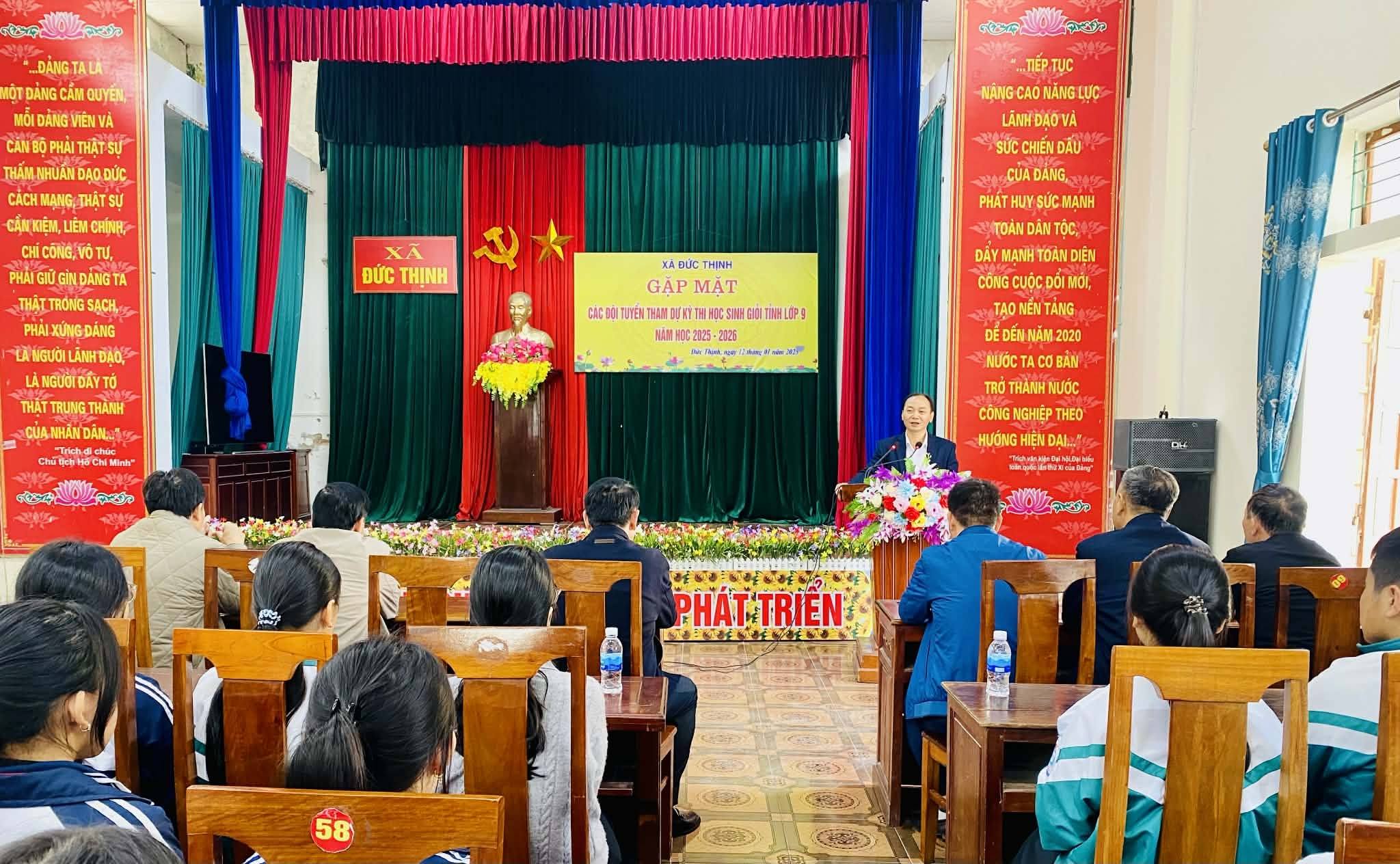 Phát biểu tại buổi gặp mặt, lãnh đạo xã Đức Thịnh đã biểu dương tinh thần nỗ lực, ý chí phấn đấu của các em học sinh trong quá trình học tập, ôn luyện; đồng thời ghi nhận sự quan tâm, trách nhiệm của nhà trường và các thầy, cô giáo trực tiếp bồi dưỡng đội tuyển. Các đồng chí lãnh đạo xã mong muốn các em vững vàng tâm lý, bình tĩnh, tự tin, phát huy tối đa năng lực để đạt kết quả cao nhất trong kỳ thi sắp tới.