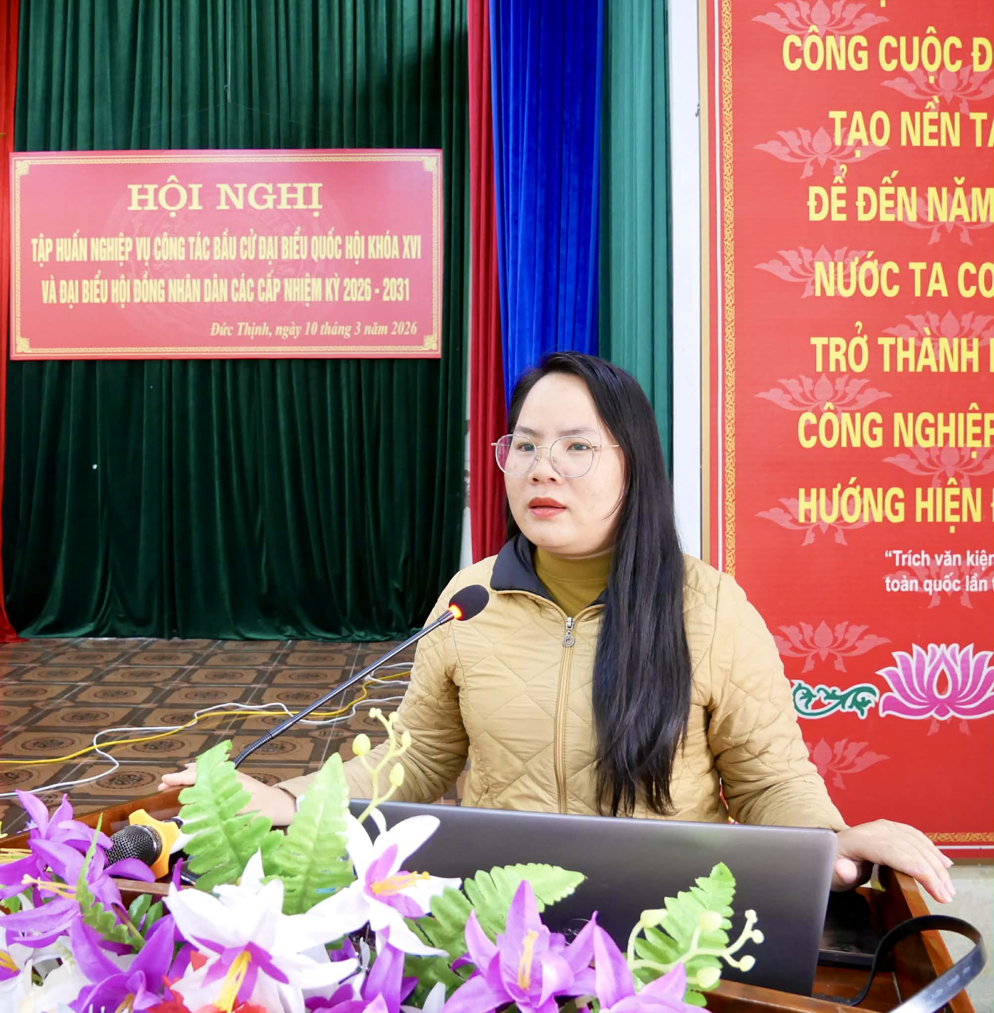Đồng chí Nguyễn Thị Ngân Bích, Phó Trưởng phòng Văn hoá - Xã hội hướng dẫn các nội dung quy trình bầu cử