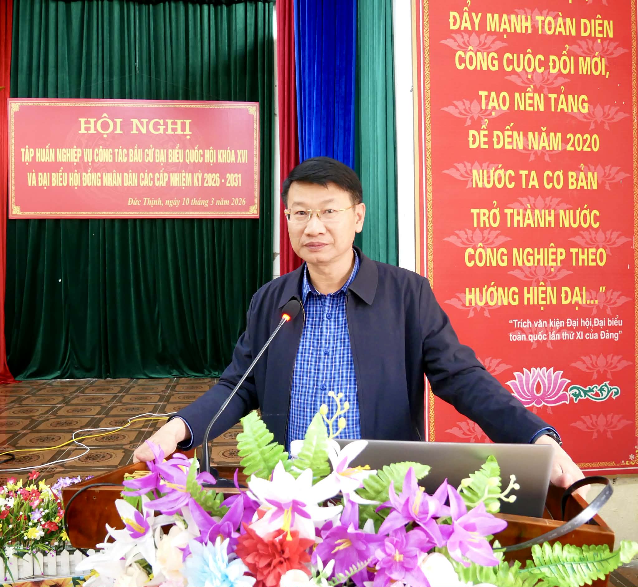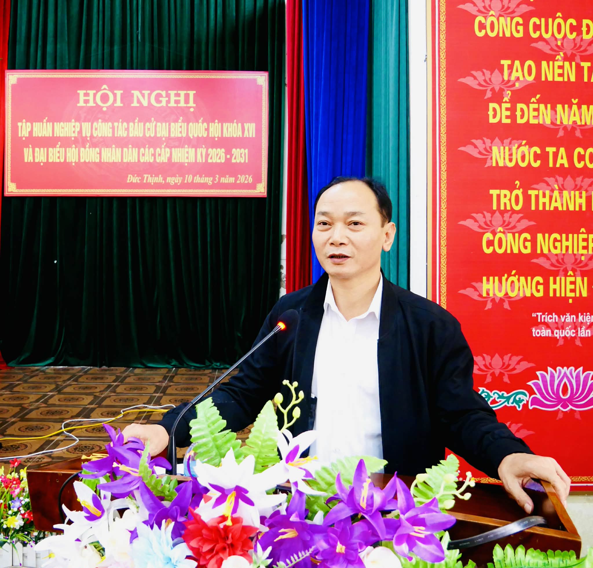 Đồng chí đề nghị các đại biểu tham dự hội nghị tập trung nghiên cứu, nắm vững các văn bản hướng dẫn, quy trình và nghiệp vụ bầu cử; chủ động trao đổi, thảo luận những vấn đề còn vướng mắc trong quá trình thực hiện. Qua đó, góp phần triển khai thống nhất, hiệu quả công tác chuẩn bị và tổ chức bầu cử tại các khu vực bỏ phiếu, đảm bảo cuộc bầu cử trên địa bàn xã diễn ra đúng quy định, an toàn, dân chủ và thành công tốt đẹp.