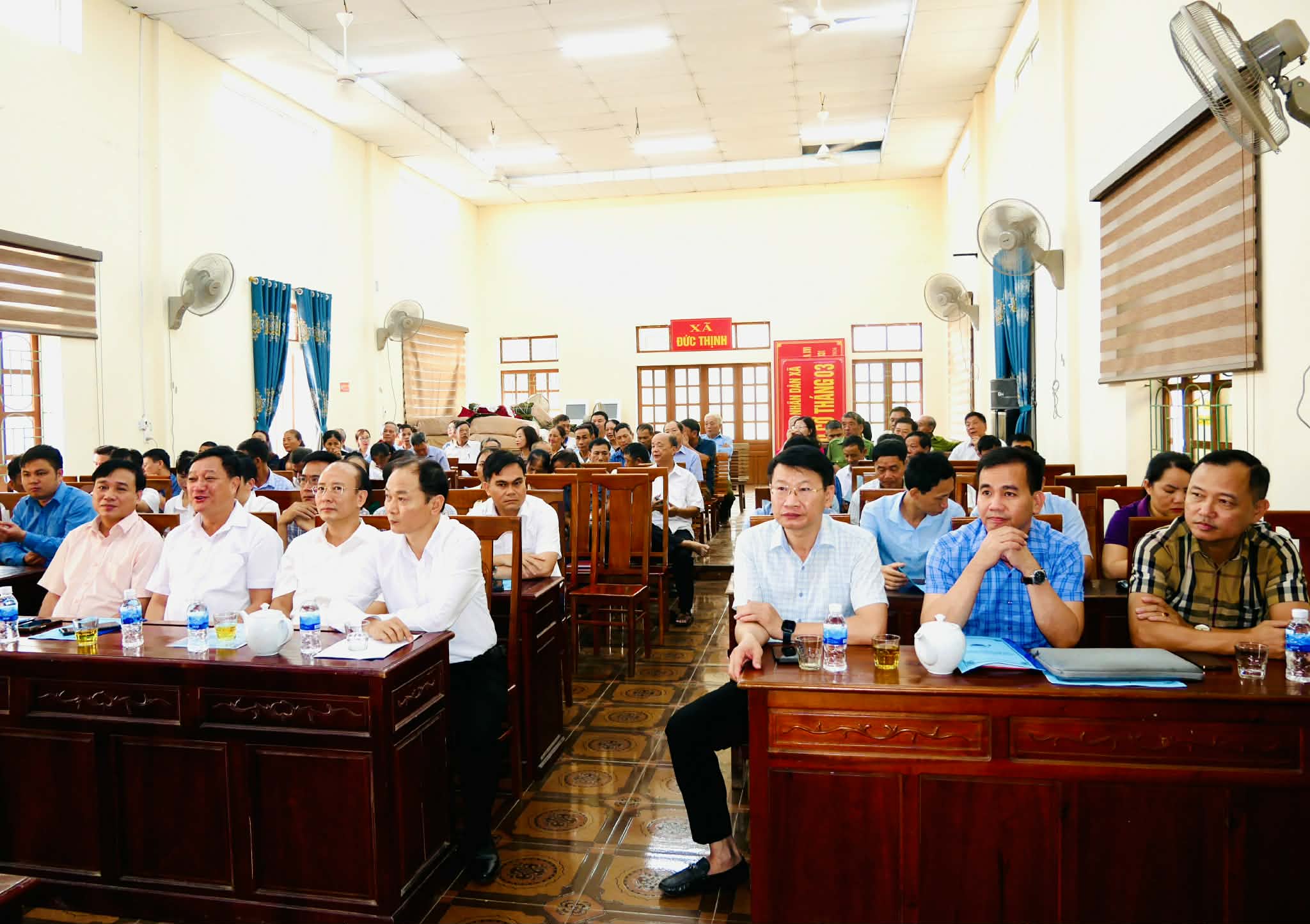 Tham dự hội nghị có đồng chí Trần Hoài Đức – Tỉnh uỷ viên, Bí thư Đảng uỷ, Chủ tịch HĐND xã Đức Thọ - Thành viên Đoàn công tác Ban Thường vụ Tỉnh ủy chỉ đạo xã; đồng chí Ngô Đình Long – Phó Chánh Văn phòng Điều phối xây dựng nông thôn mới tỉnh cùng đại diện lãnh đạo Văn phòng Điều phối xây dựng nông thôn mới tỉnh. Về phía xã Đức Thịnh có đồng chí Nguyễn Thiều Quang – Bí thư Đảng uỷ, Chủ tịch HĐND xã; đồng chí Bùi Lê Văn – Phó Bí thư Thường trực Đảng uỷ; đồng chí Nguyễn Anh Đức – Phó Bí thư Đảng uỷ, Chủ tịch UBND xã cùng các đồng chí trong Thường trực HĐND, lãnh đạo UBND, UBMTTQ Việt Nam xã, các phòng, ban, đoàn thể và thành viên Ban chỉ đạo xây dựng nông thôn mới.